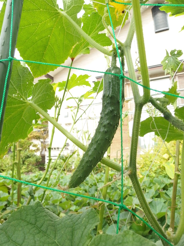 キュウリさんは、夏場に追加して植えたもの。もうすぐ食べられる~。