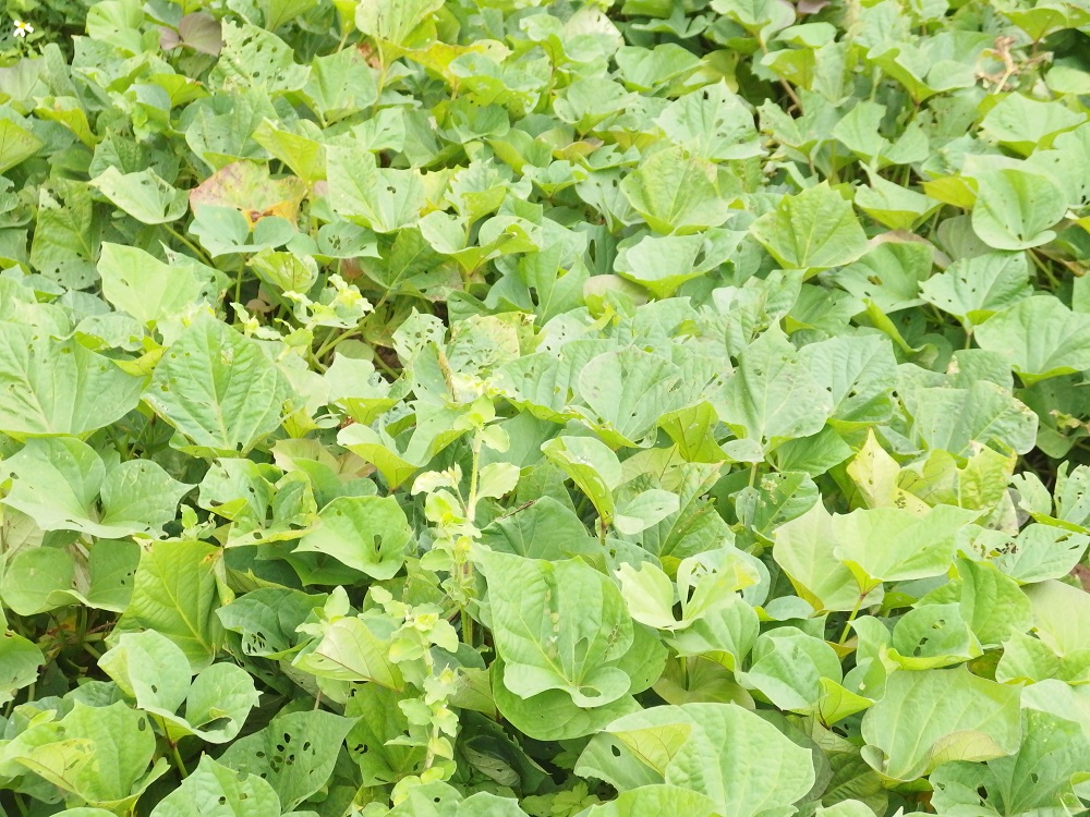 ここは、サツマイモですが、良く見ると雑草だらけ。品種は、安納芋です。月末くらいが収穫時期かな~。あ~、焼き芋が食べられる~。